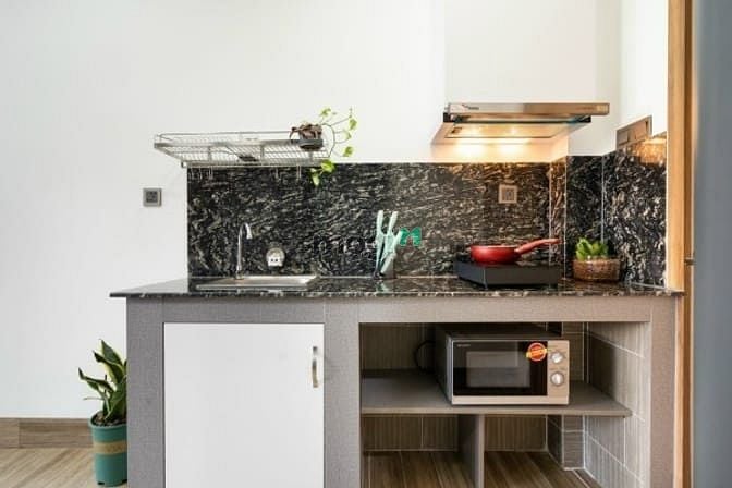 Căn hộ rộng 35m2, thiết kế hiện đại, nội thất mới tinh, sạch sẽ, chỉ cần dọn vào ở ngay. Điểm cộng đặc biệt là cửa sổ lớn thoáng gió, cách xa khu bếp nên không bị ám mùi, tạo không gian sống thoải mái, dễ chịu mỗi ngày.